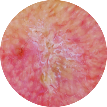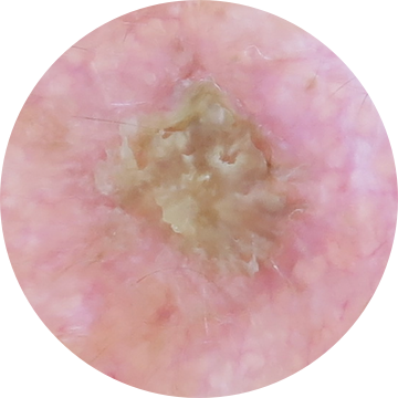 Lesions coalescing and not clearly distinguishable across large sun-affected area